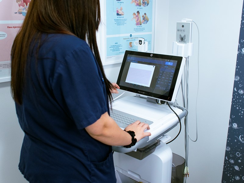 Vi utreder även symtom på eventuell hjärtsjukdom som exempelvis bröstsmärta, andfåddhet, hjärtklappning och blåsljud.